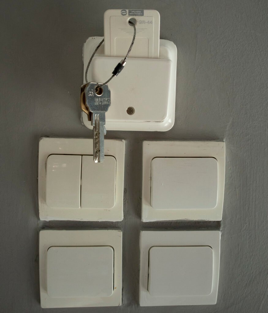 A swimming pool with sun beds is provided. An outdoor shower is provided near the pool